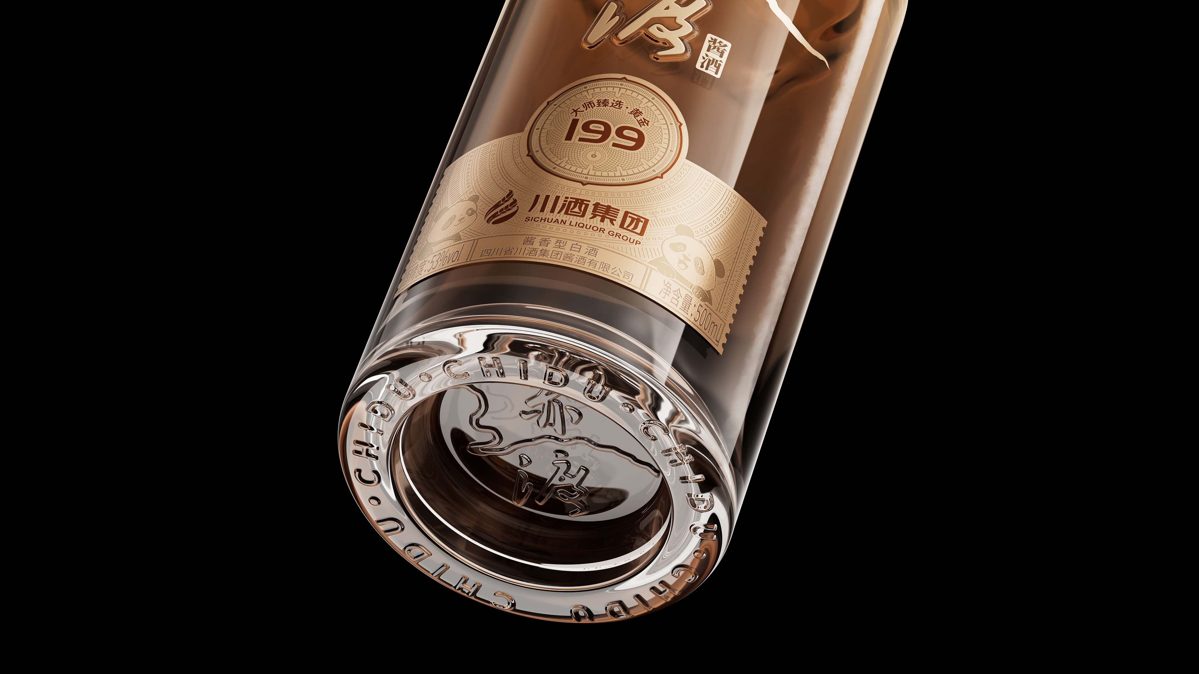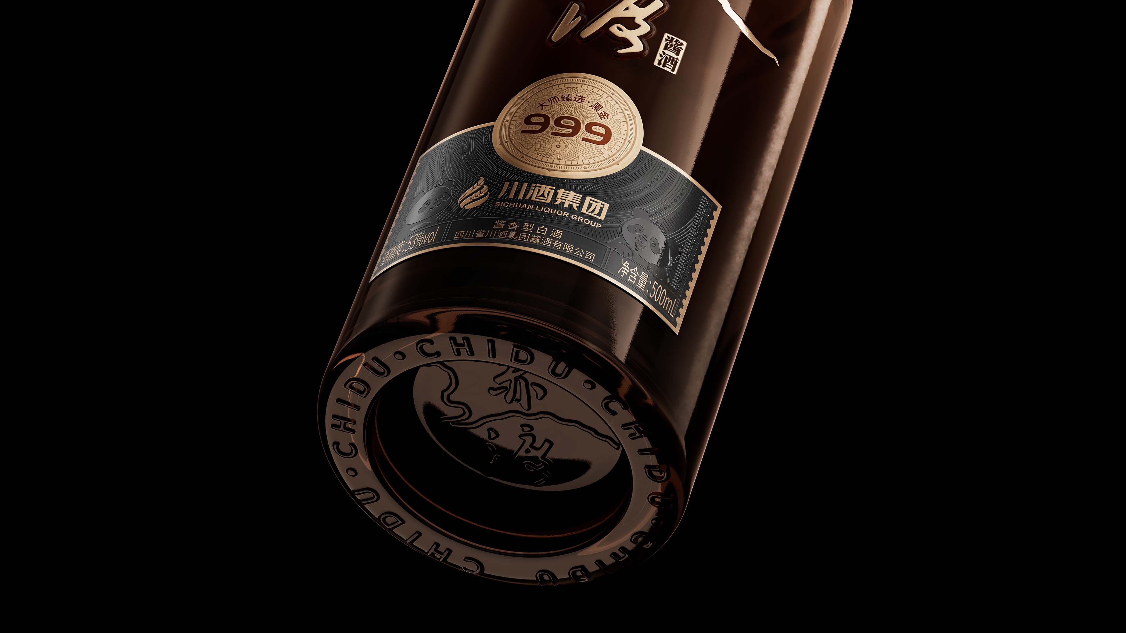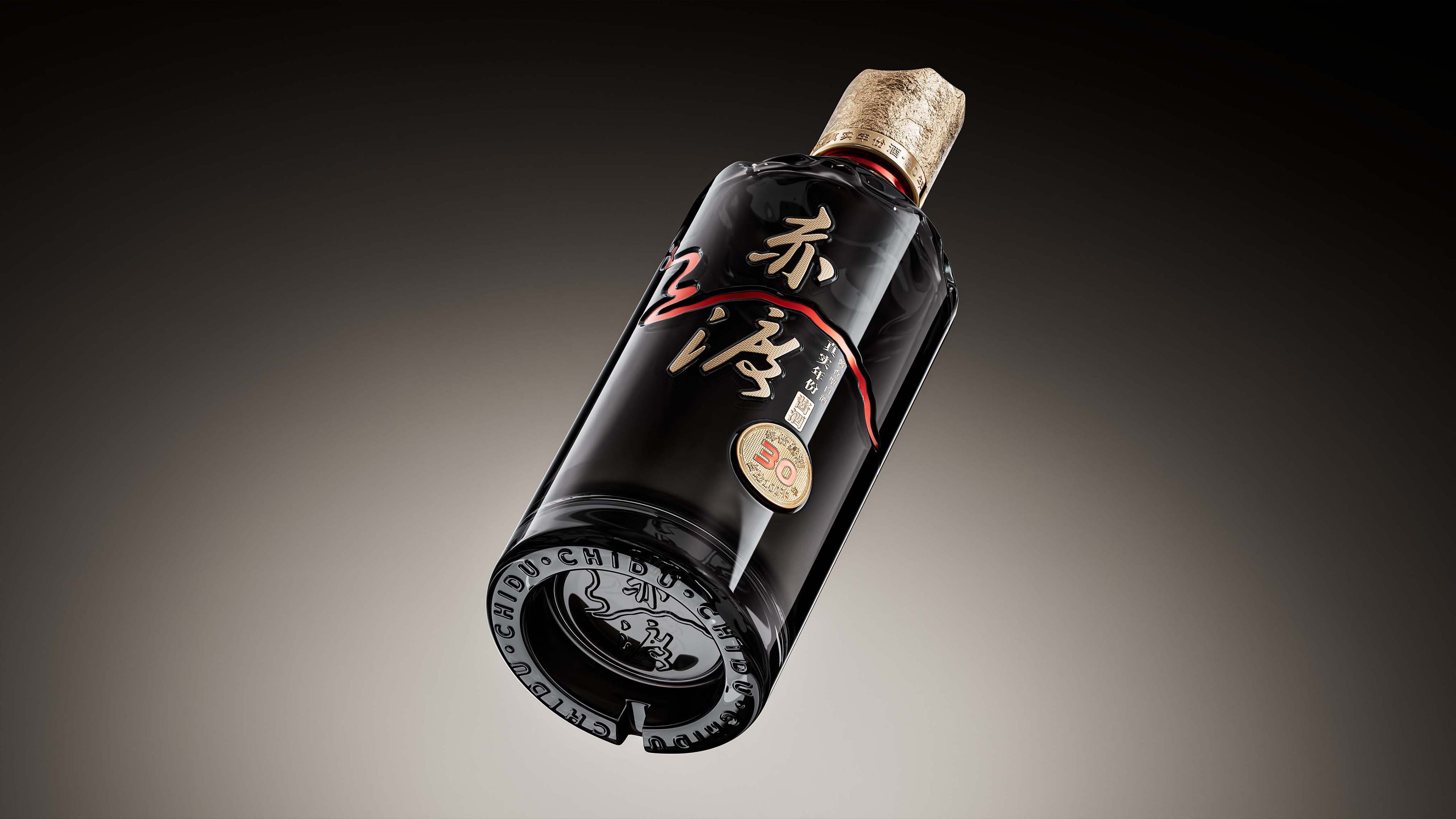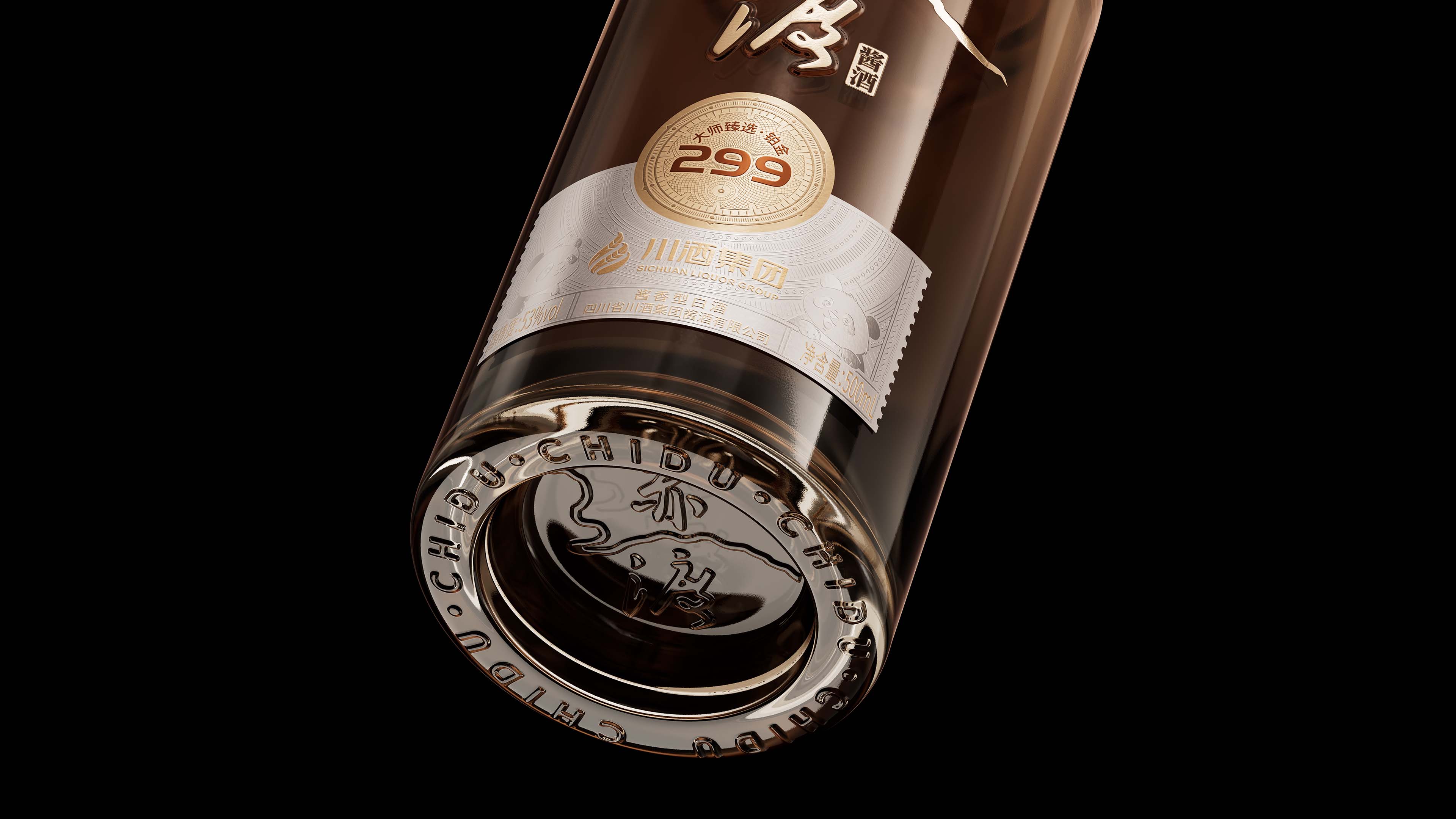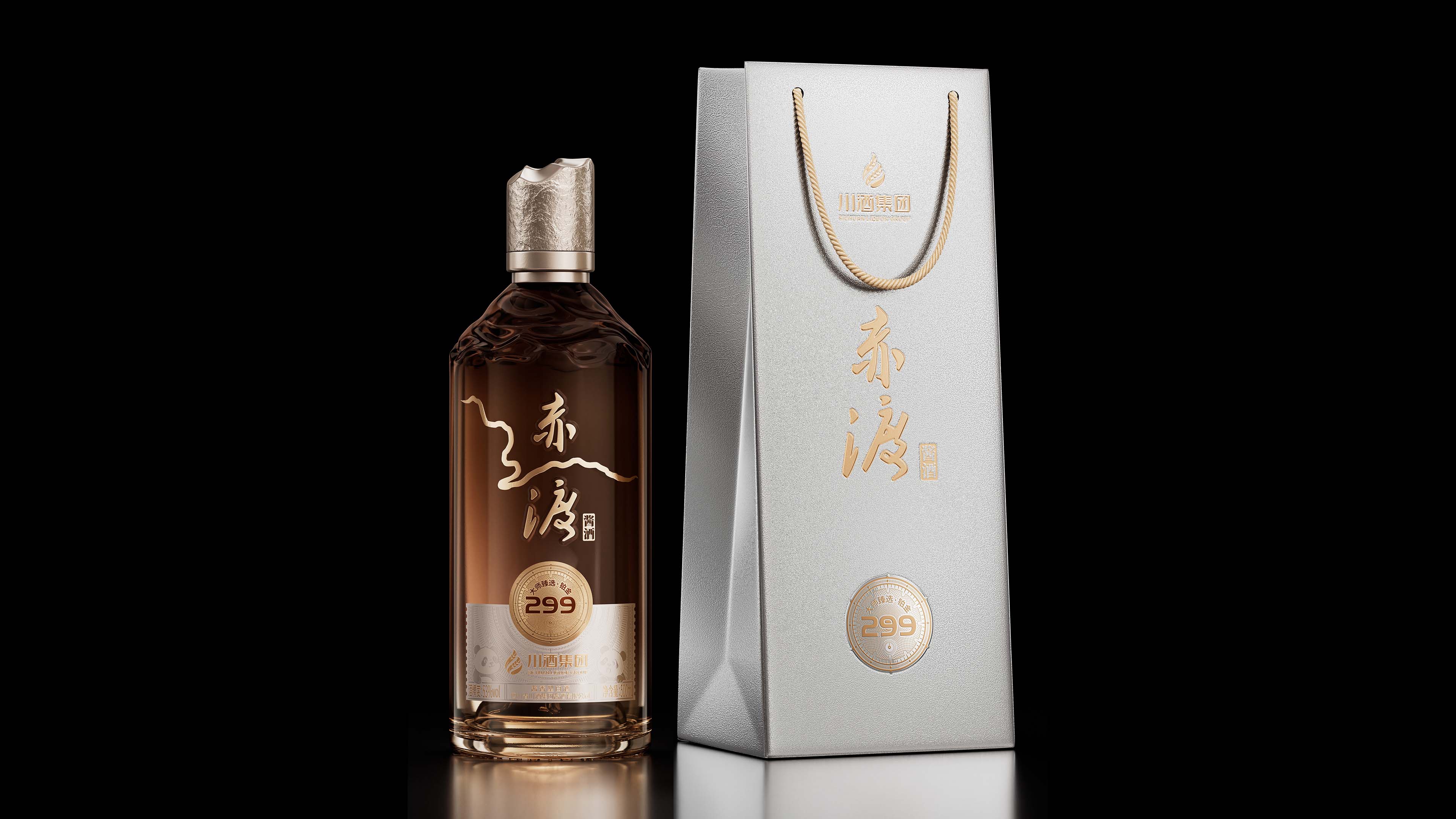 赤渡品名,因四渡赤水而来。而四渡赤水的故事在中国家喻户晓,蕴藏着【百折不挠,勇往直前】的精神。由此,段高峰设计提炼出【千锤万凿出深山】的话语,开始此款产品的设计。器型上,选择保留茅型瓶,突出酱酒的特性,彰显产品的正宗感;在瓶肩融入凿石肌理线条,以彰显赤渡品牌个性;瓶盖同样选用具有份量感的金色凿石瓶盖,体现产品的价值感。字体上,赤渡品名选用了【毛体】,让这款产品的故事性更强。同时,赤渡品名又与象征“古蔺与习水的赤水河流域”的核心图形组合,丰富了赤渡品牌故事的形象表达。